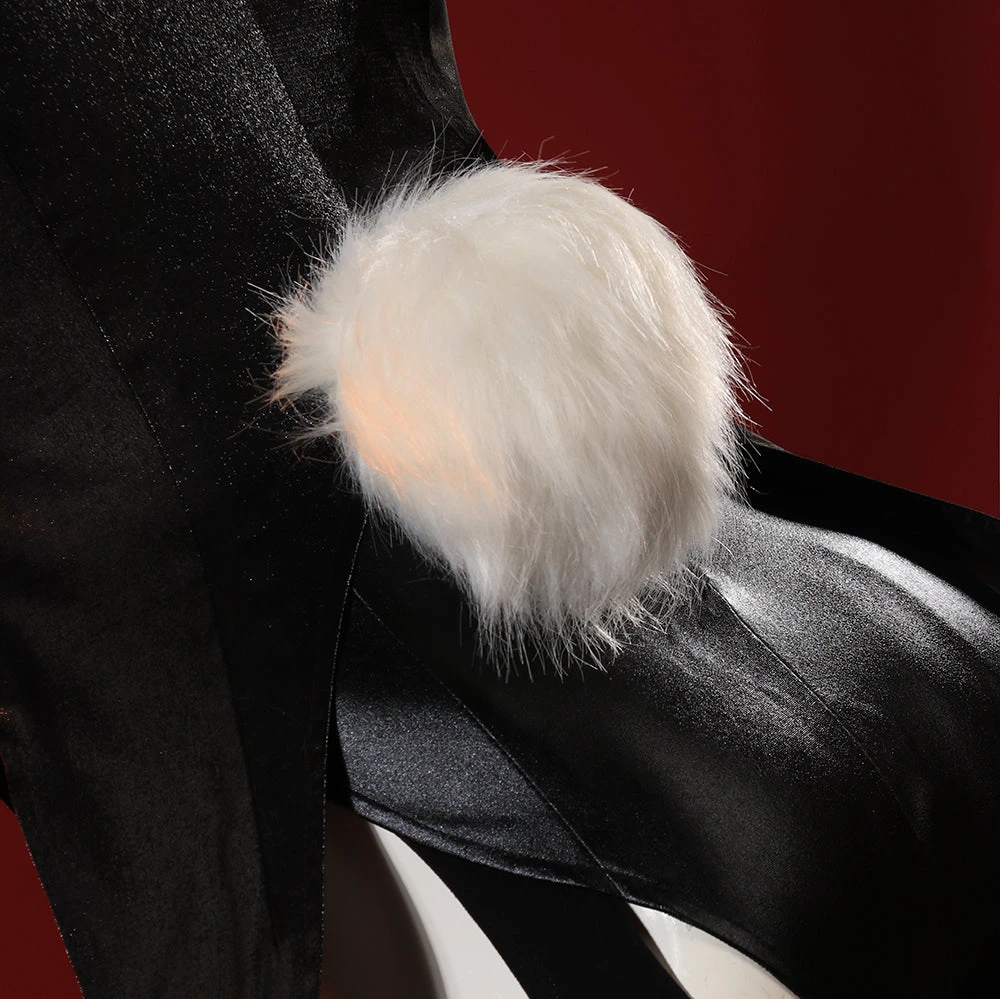 Full Set: 1.Coat*1 2. Underwear*1 3. Headband*1 4. Collar*1 5.Plush tail 6.Transparent shoulder strap 7.Garters*1.