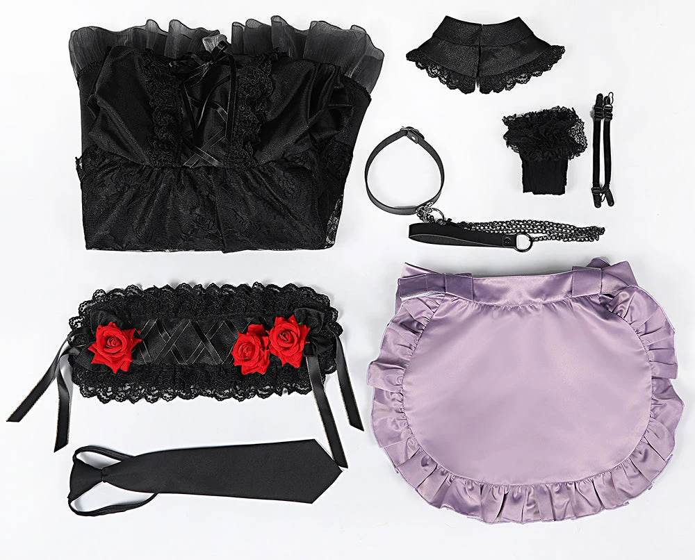 - Package: Dress*1, Headgear*1, Necktie*1, Collar*1, Necklace*1, Socks*1, Anti-slip Strap*2, Apron*1