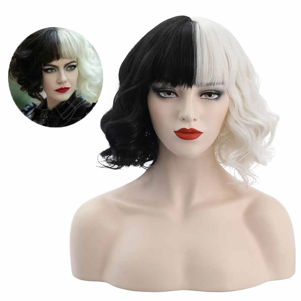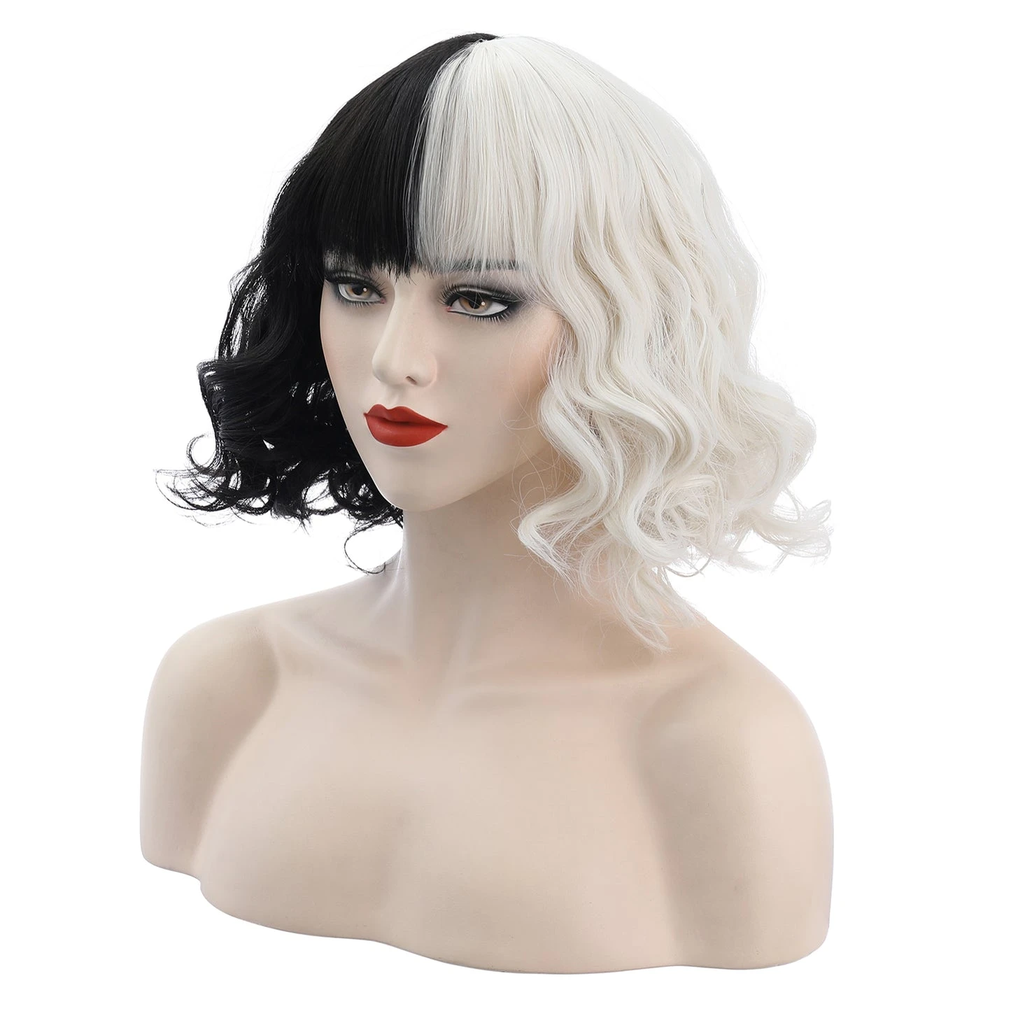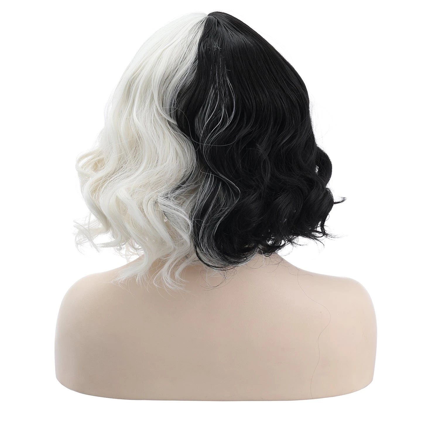 Gvavaya Cosplay Cruella De Vil Short Curly Hair Props Halloween Party Cosplay Wig Cruella Wig