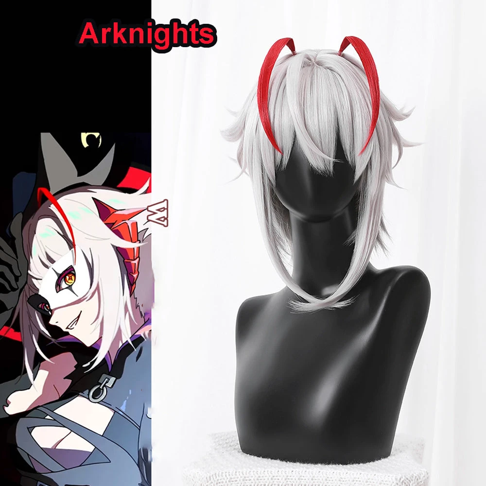 Gvavaya Game Cosplay Arknights W Cosplay Ambience Synesthesia & Rouge’s Secret Rooms W Cosplay Wig 30cm Long Silver Gray Wig