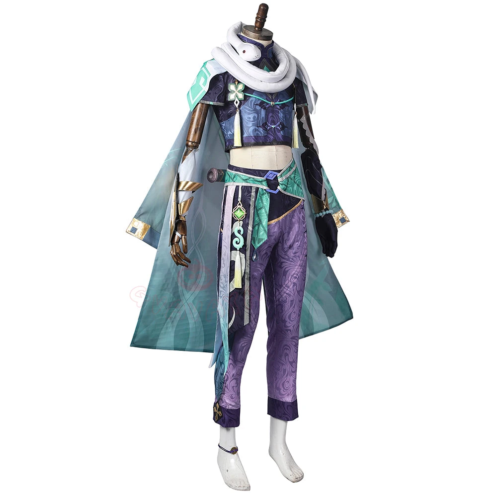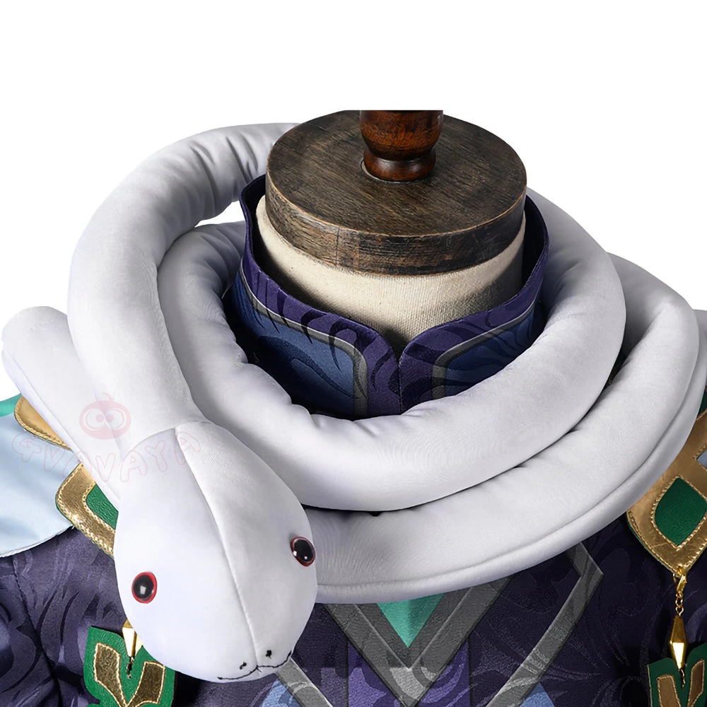 Package Include: Top*1, Cloak*1, Pants*1, Waistband*1, Vision charm*1, Arm protector*1, White snake prop*1, Imitated bamboo prop*1, Bracelets*1, Gloves*2, Wrist protector*1, Anklet*1, Glasses prop*1, Hairpin*2