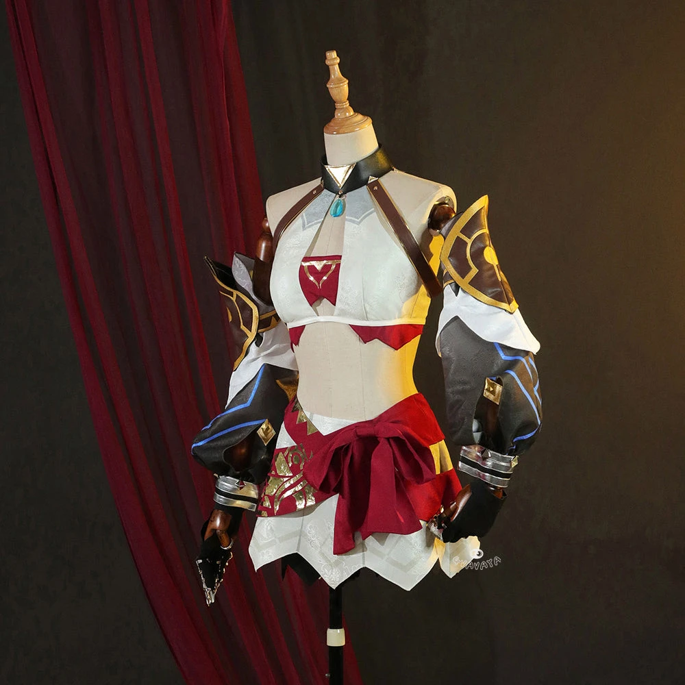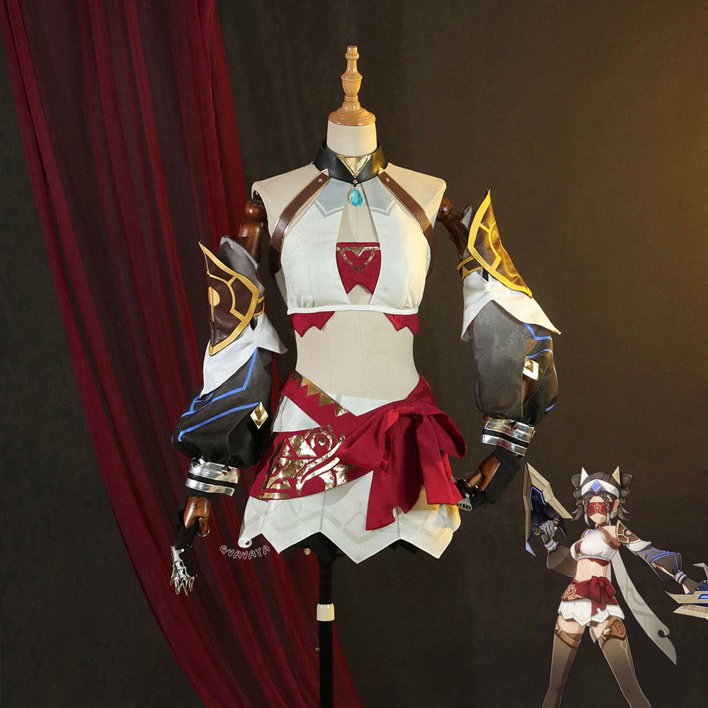 Package: Tops*1, Skirt*1, Sleeves*2, Hair bands*1, Headdress*1, Hair pin*2, Eye mask*1, Ring*2, Finger cots*8, Waist bow*1, Gloves*2, Bottom pants*1, Knee high stockings*2