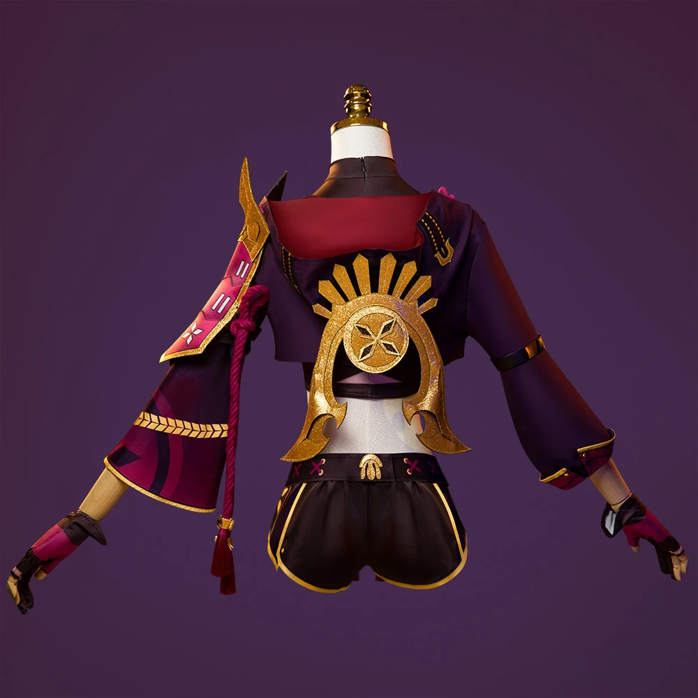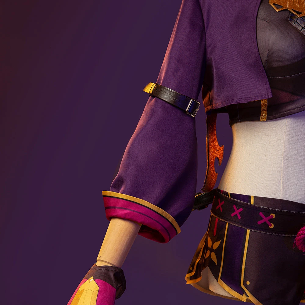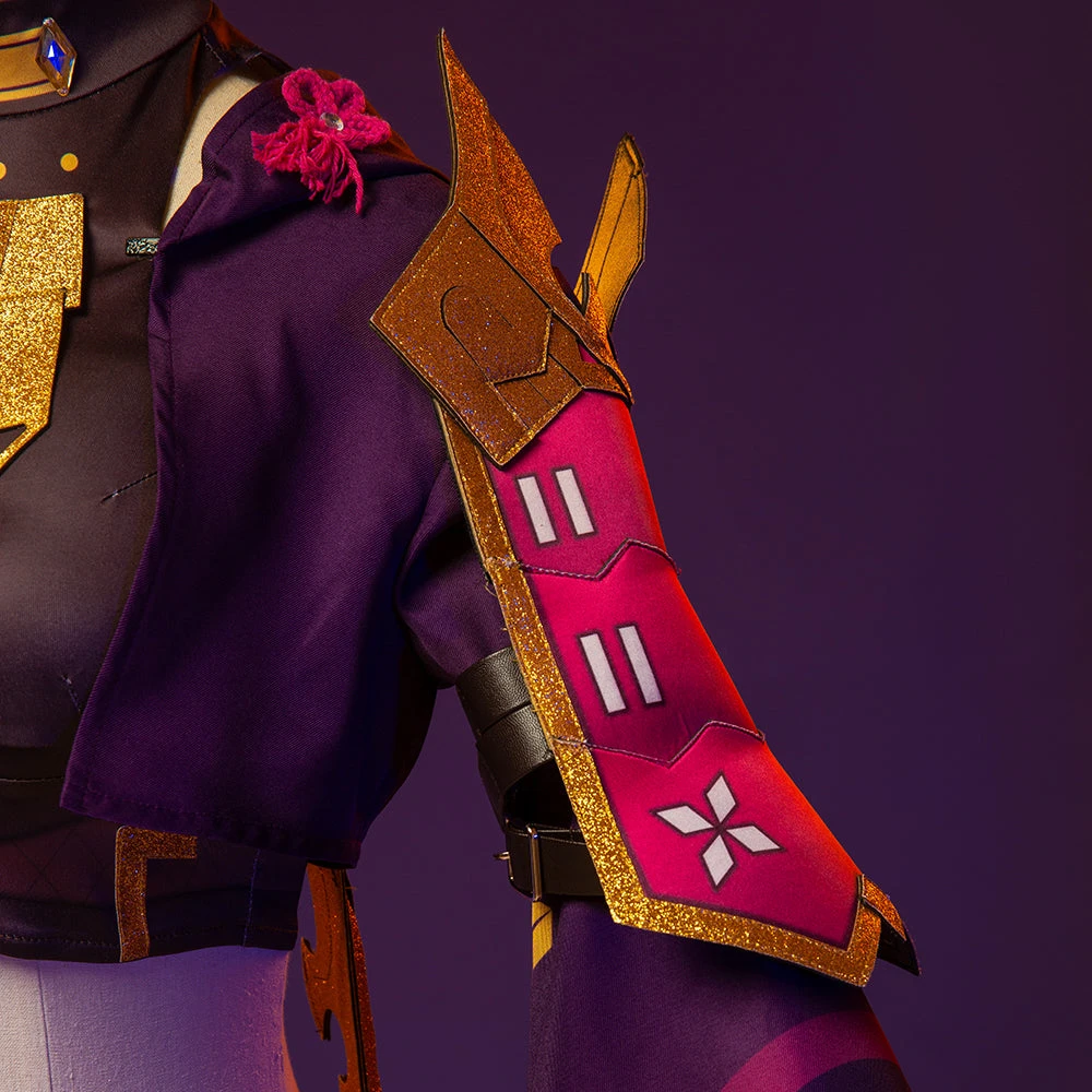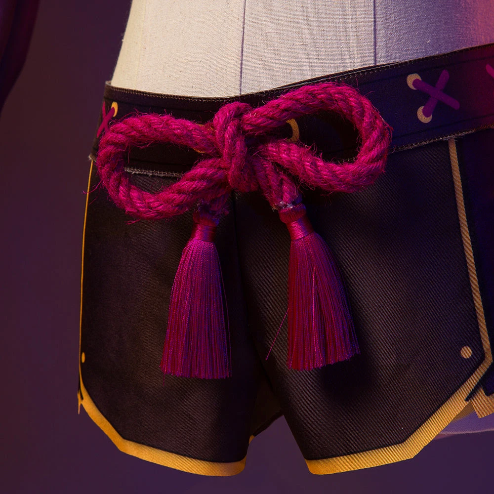 - Package: Coat*1, Tops*1, Shorts*1, Socks*2, Hairdress*1, Earrings*2, Arm Strap*2, Shoulder Armor*1, Gloves*2, Belt*1, Knee Pads*2, Mask*1, Back Accessories*1, Electro Vision Prop*1