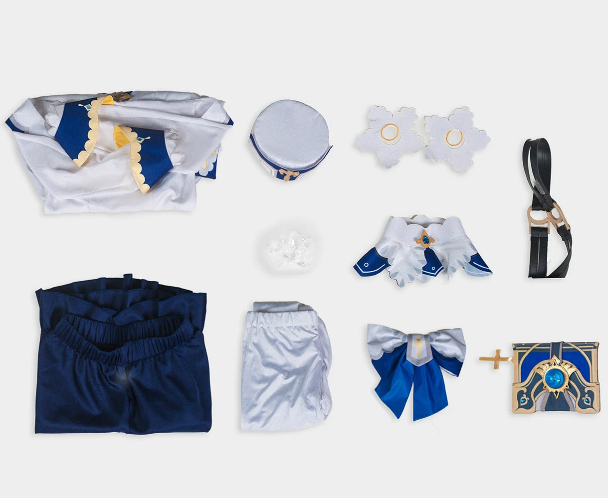 - Package: Hat*1, Hair Accessories*2, Dress*1, Skirt*1, Collar*1, Chest Bow-knot*1, Belt*1, Pantyhose*1, Prop Book*1, Transparent Shoulder Strap*2