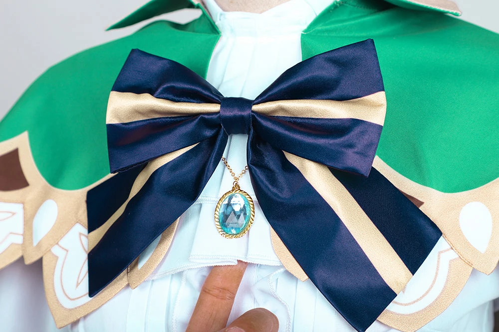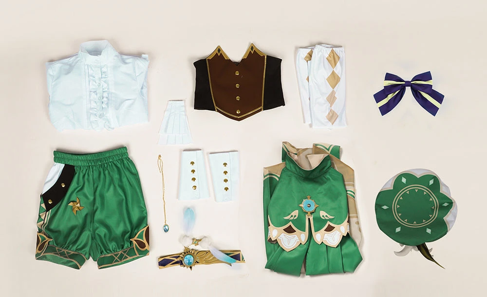 - Package: Cloak*1, Shirt*1, Girdle*1, Shorts*1, Collar Bow Tie*1, Belt*1, Belt Decoration*1, Hat*1, Bracer*2, Socks*2, Collar Decoration*1, Necklace*1