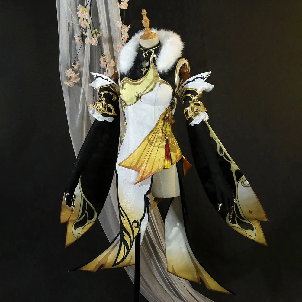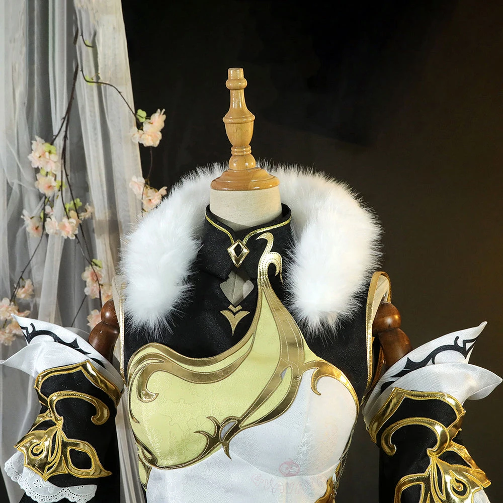 Package Include: Dress*1, Fur collar*1, Sleeves*2, Gloves*2, Pantyhose*1, Waist vision accessary*1, Hair accessories*2, Nail protectors*6