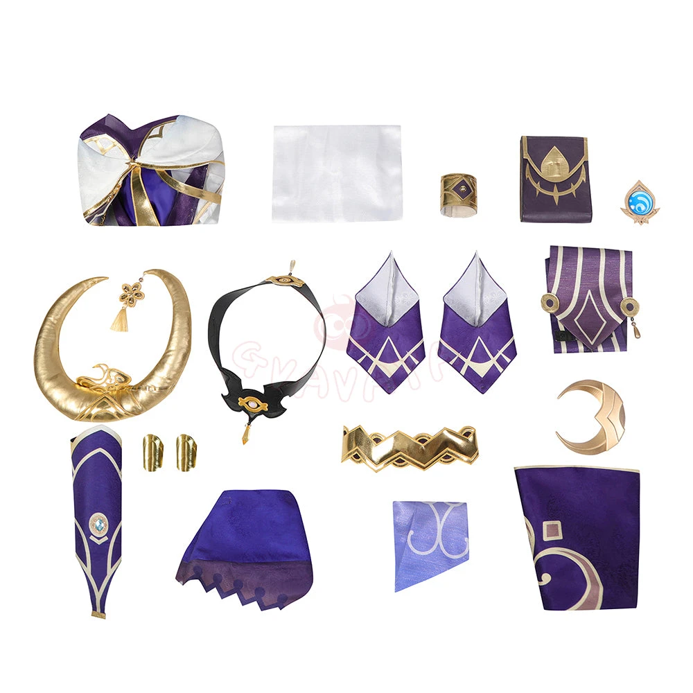 Package: Tops*1, Belt*1, Wristband*1, Waist bag*1, Sumeru hydro vision*1, Shorts*1, Headgear*4, Leglet*2, Shoulder ribbon*1, Waist accessories*1, Wide streamer*1, Side streamer*1, Hand guard*1, Sleeve*1