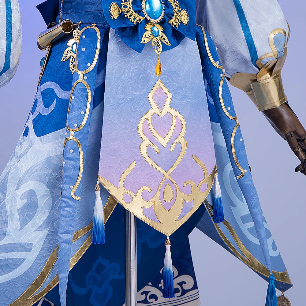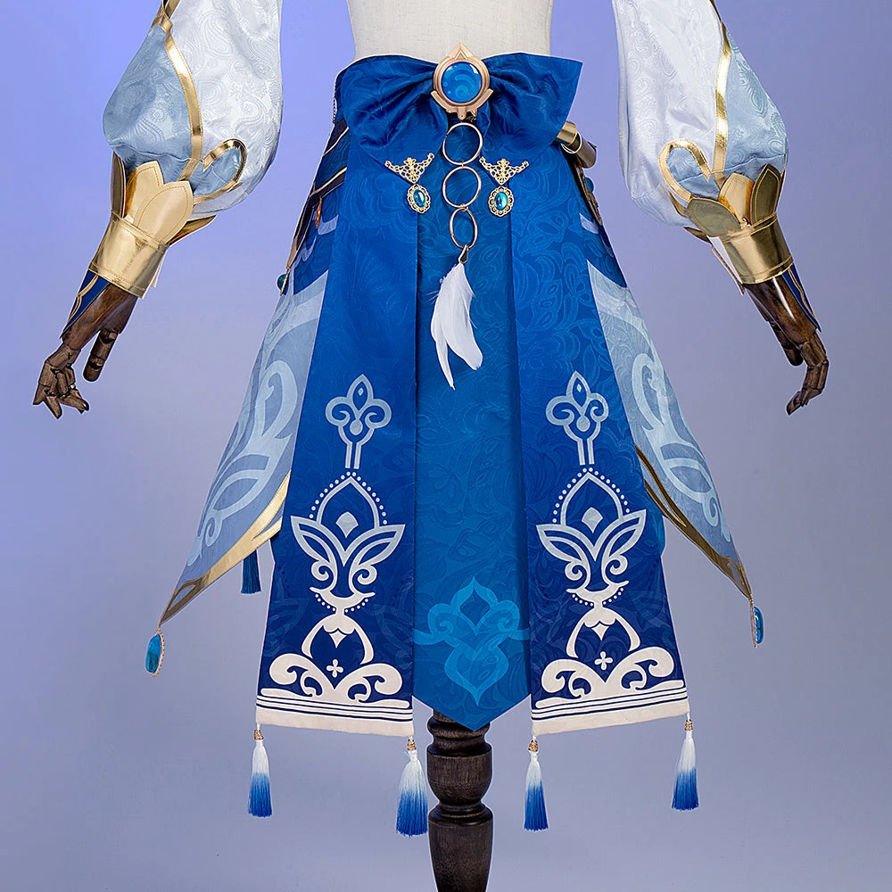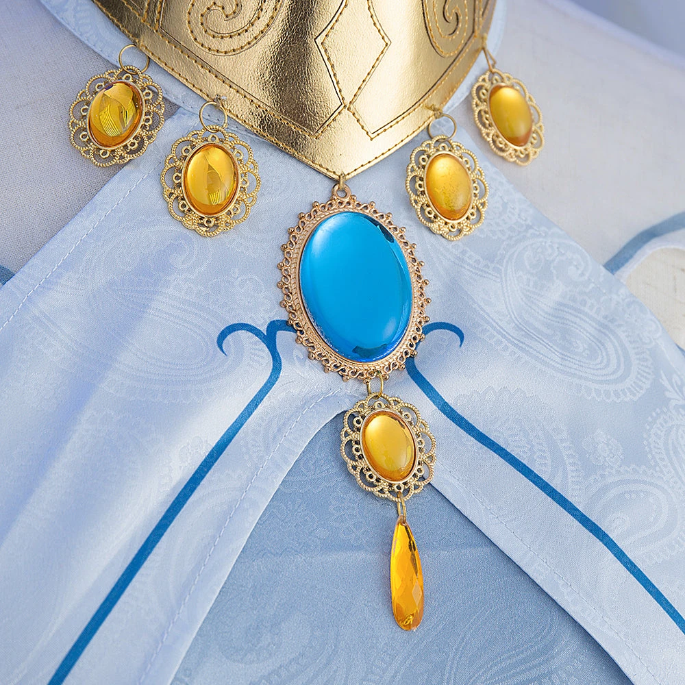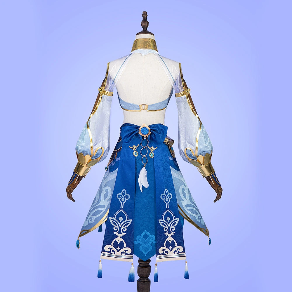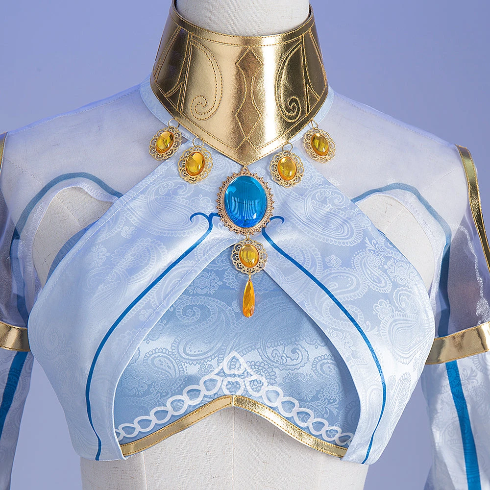 Package Include: Headdress*2, Veil*1, Neck decoration*1, Top*1, Bracers*2, Skirt*1, Girdle*1, Back bow+vision accessories*1, Leggings*1, Leg strap*1
