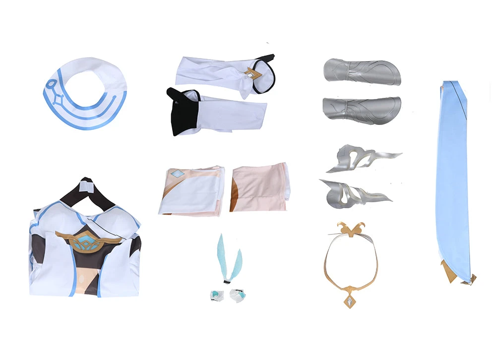 - Package:Â Dress*1, Collar*1, Rear Streamer*1, Sleeves*2, Leg Sets*2, Handguard*2, Leggings*2, Waist Accessories*1, Headdress Flower*3