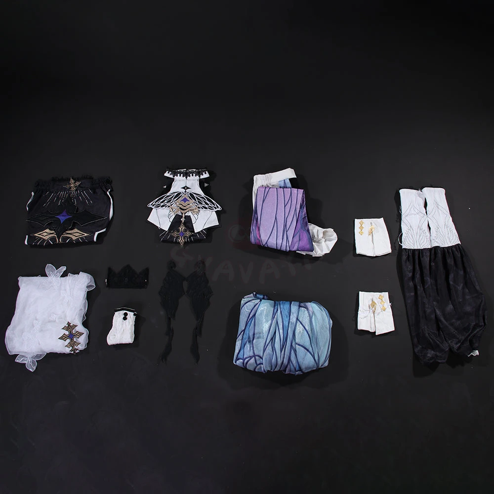 Package Include: Top*1, Back swing*1, Girdle*1, Sleeves*2, Leg sets*2, Skirt*2, Veil*1, Socks*2, Accessories*2, Headdress*1