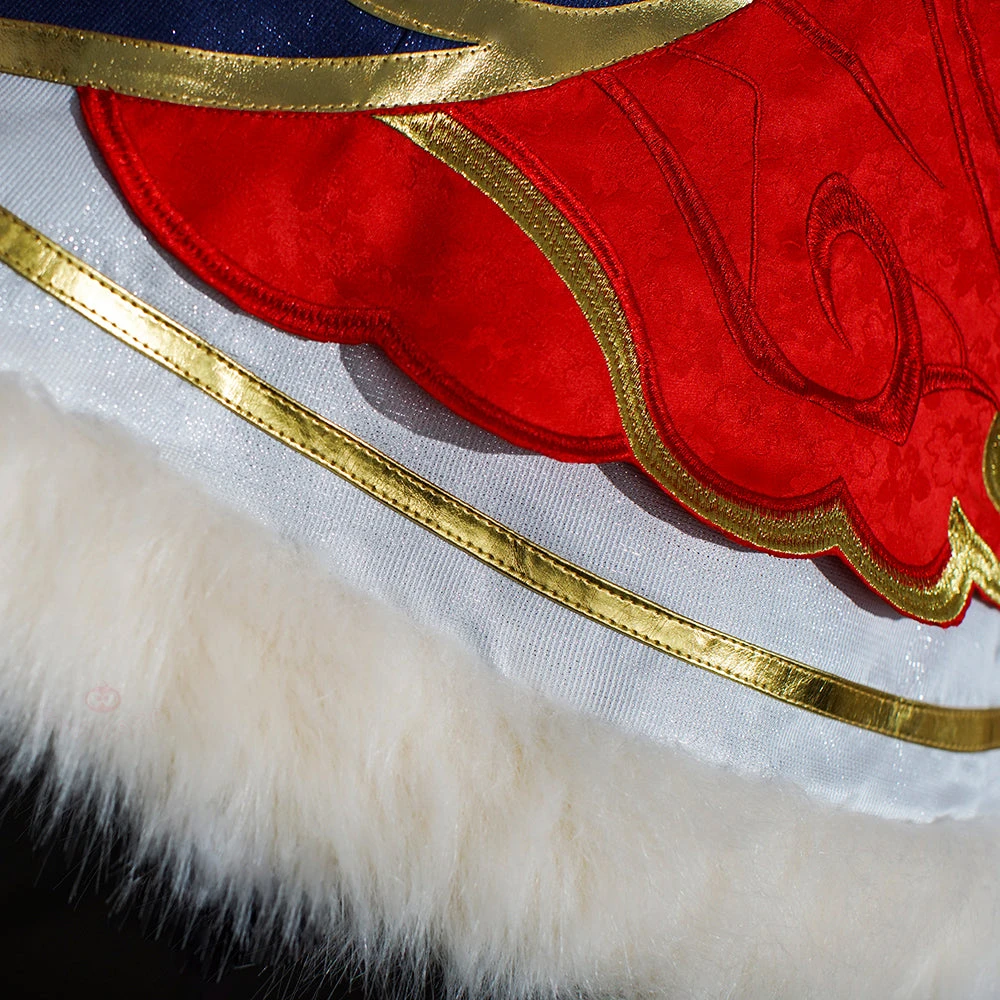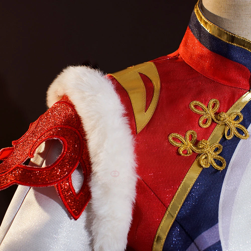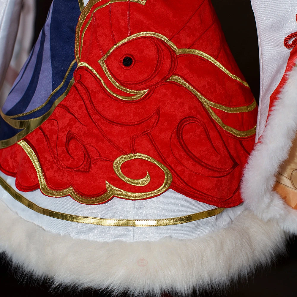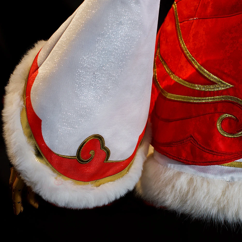 Material: Dark pattern cherry jacquard+Imitation fox fur+Satin+3060 yarn+Spandex+Jaqcuard+Red glitter+Polyeter taffeta