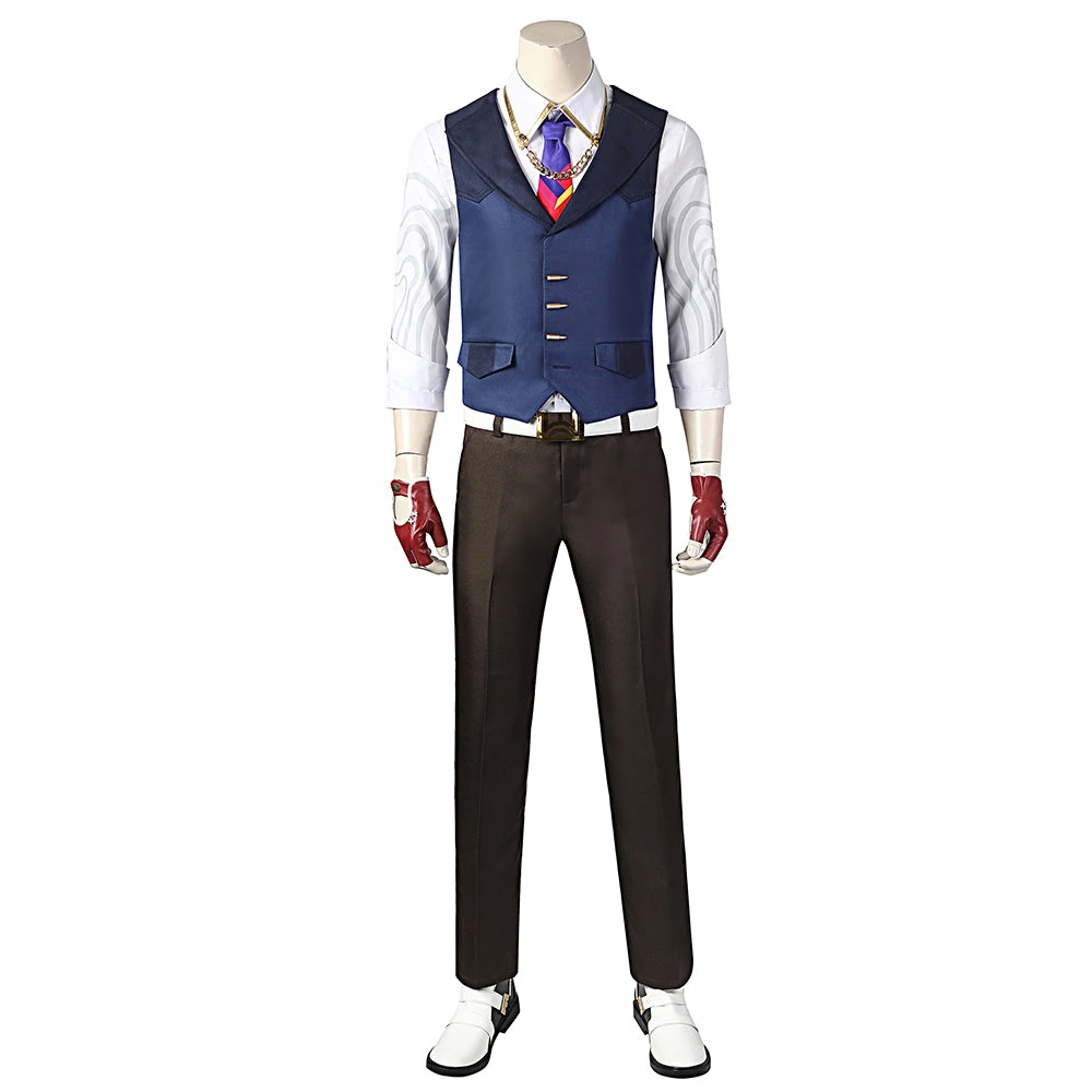 Package Include:Vest*1,, Pants*1,, Tattoo Stickers*1, Belt*1, Gloves*1, Tie*1, Glasses*1, Earrings*1, Collar Chain*1, Shirt*1